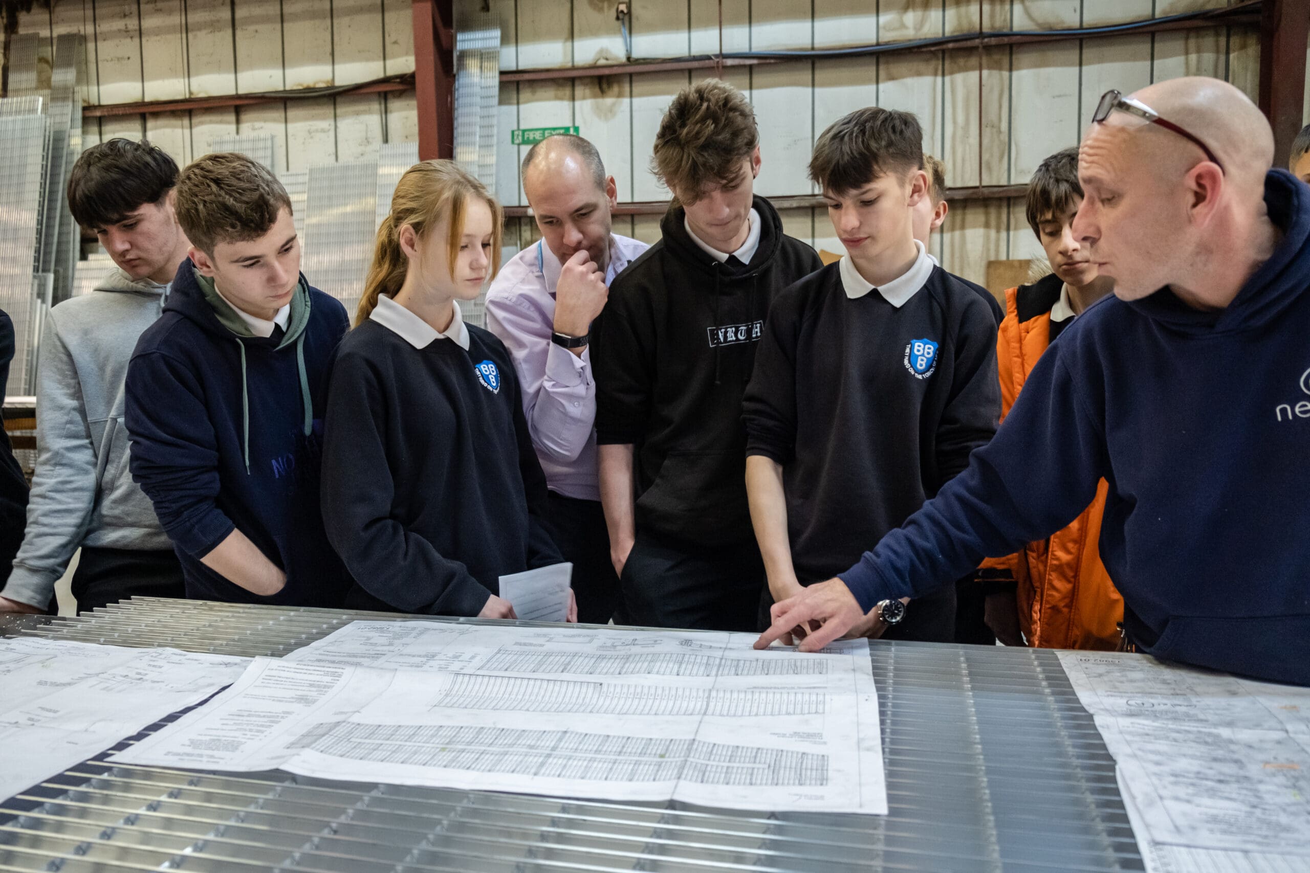 During this tour, Verity explained the importance of apprenticeships in the engineering field and how hands-on experience could help them with their career paths. He guided the students through the production process at Neaco, beginning in the flooring department where Neaco manufactures its modular aluminium flooring.