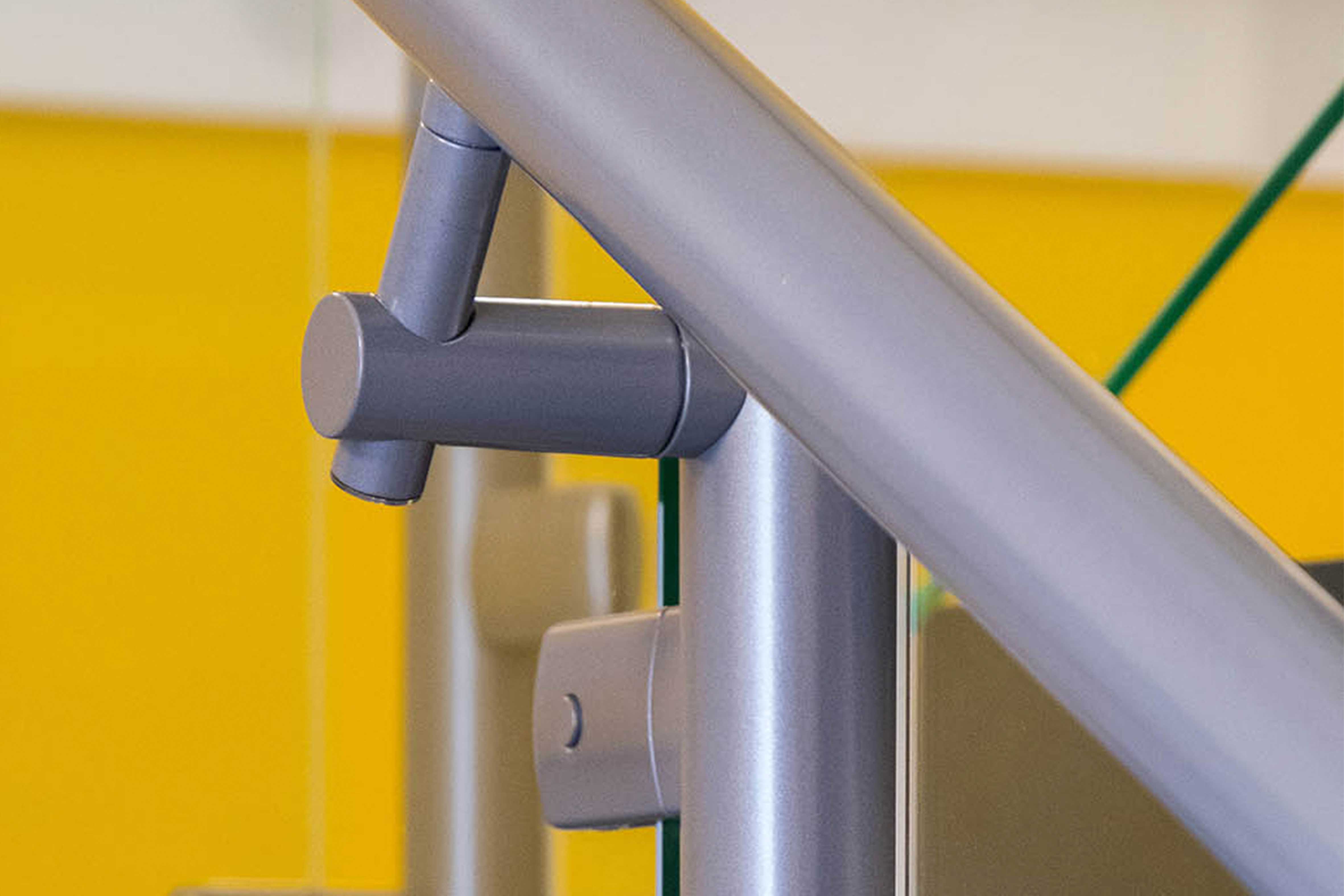 Our aluminium balustrade top rail can be manufactured in mill finish or powder-coated in a wide range of RAL colours. It can be offered in either nylon or polyester, nylon being a preferred application on superior chemical resistance, providing the highest level of abrasion resistance. Polyester is favoured for weather and UV resistance, providing more excellent colour stability than nylon, which will fade faster with prolonged exposure to sunlight. Bespoke RAL colours can be achieved here at neaco as we have our own in-house powder coating plant. The powder coating gives the balustrade a satin-smooth finish which is non-chip, permanent, hardwearing and abrasion-resistant.