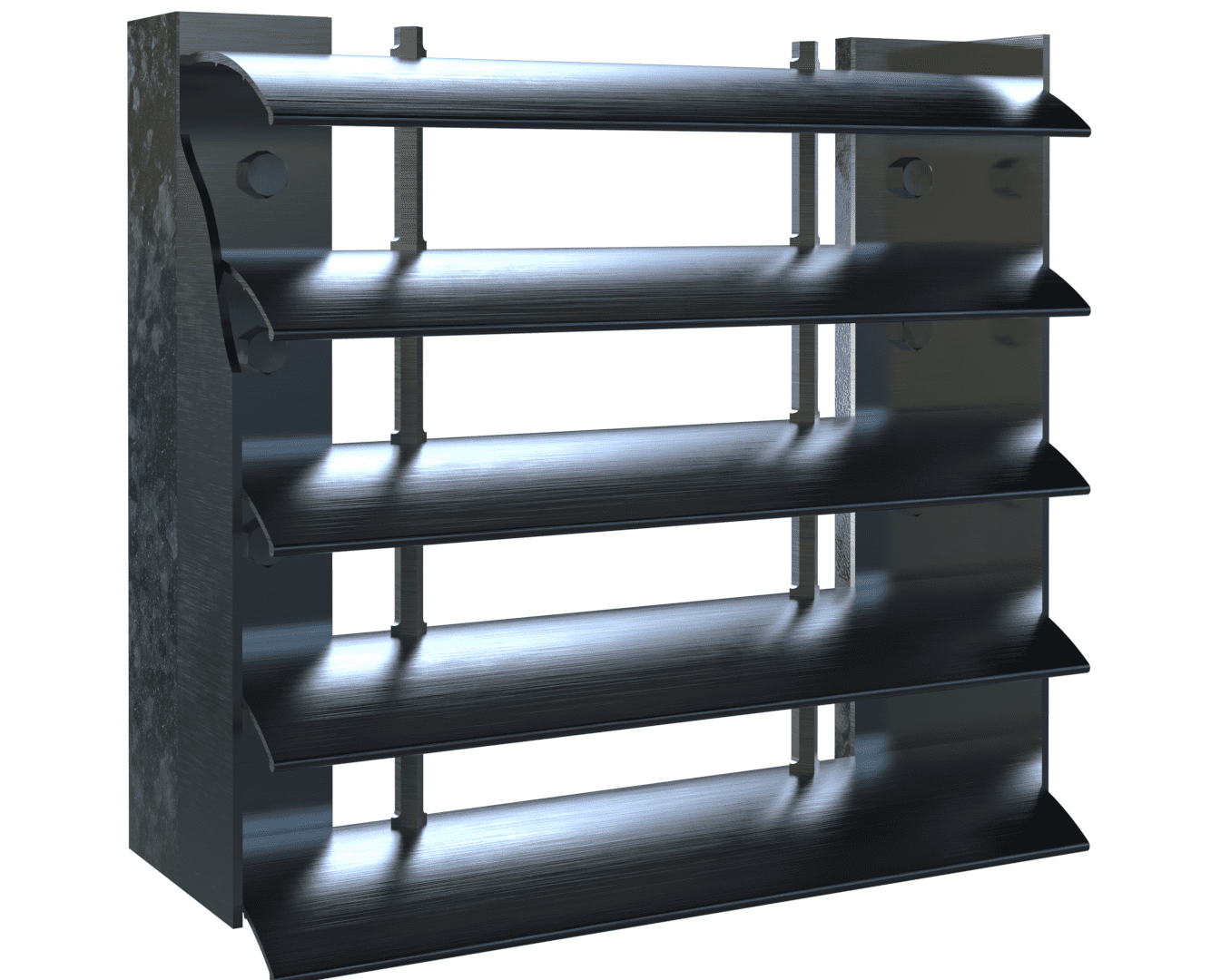 Brise Soleil uses curved alternate louvre extrusions to provide the same high performance as our Louvredek, either as a combined walkway and sunscreen or solely as a sunscreen.