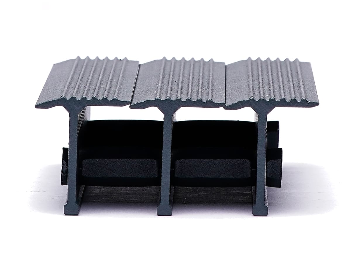 Due to fire safety requirements, steel joists are now widely used instead of timber joists, but steelwork is expensive. That means substantial savings can be made with our decking because its structurally efficient design needs fewer supporting joists.